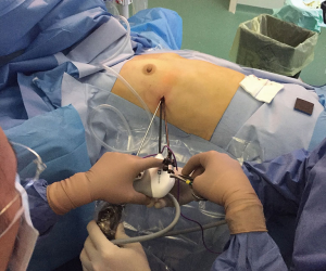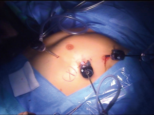 Cite this article as: Infante M, Benato C, Giovannetti R, Bonadiman C, Canneto B, Falezza G, Lonardoni A, Gandini P. VATS thymectomy for early stage thymoma and myasthenia gravis: combined right-sided uniportal and left-sided three-portal approach. J Vis Surg 2017;3:144.