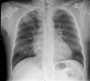 We report a 62-year-old male, presented with shortness of breath and cough. He is diabetic, hypertensive, and is known to suffer from chronic obstructive pulmonary disease (COPD). He is a heavy smoker for more than 40 years. His chest X-ray showed right upper lobe mass (Figure 1).