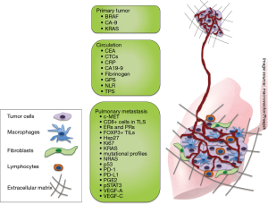 Circulating biomarkers are of increasing interest as they can be easily obtained from peripheral blood samples (Table 2). Circulating tumor markers e.g., CEA and CA 19-9 are already well established and have a number of clinical applications. In patients with lung metastasis, they might play a role for predictive purposes when selecting patients for surgery as well as for analysis of recurrence patterns after PM.
